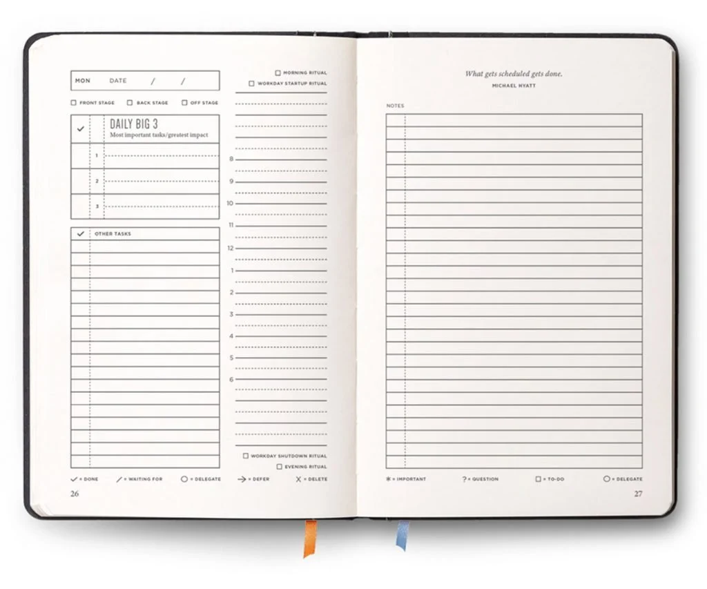 “One part planner and one part life coach, this little book guides you in identifying your annual goals, setting weekly priorities, and transforming them into manageable daily tasks. Whatever you set out to do this year, the Full Focus Planner can help you achieve it.”